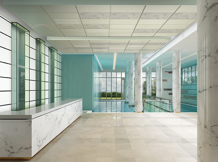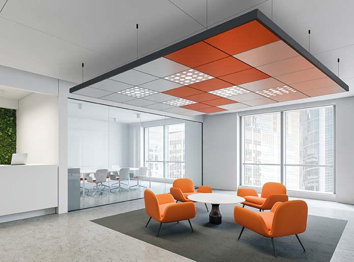 Accoppiati a corpi illuminanti e materiali isolanti diventano elementi architettonici multifunzionali, che sotto il profilo acustico consentono di intervenire con efficacia sul tempo di riverbero, per favorire l’intellegibilità del parlato.
