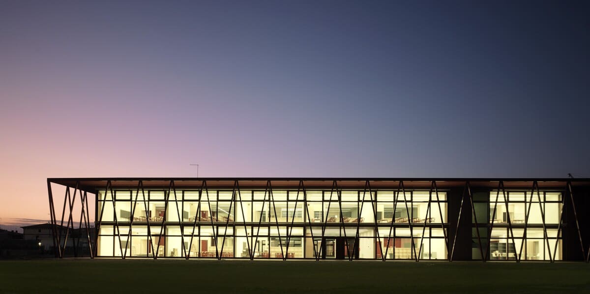 La particolarità proviene dal fatto che i progettisti hanno sperimentato layout scolastici circolari e un kit di montaggio che permette di smantellare l’edificio a fine vita riciclando tutti i materiali utilizzati per la sua costruzione.
