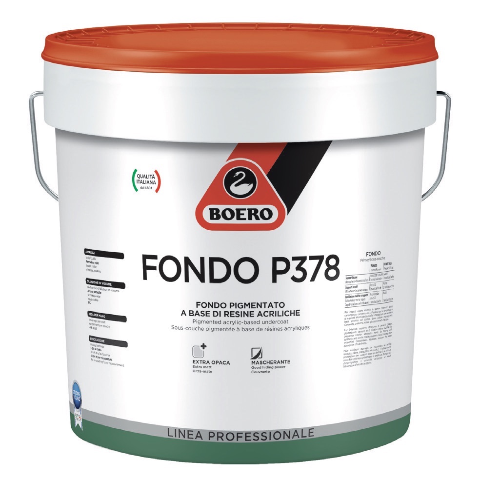 7. Fondo P378 pigmentato a base di resine acriliche, indicato come primer per la realizzazione di finiture a spessore. Tinteggiabile.