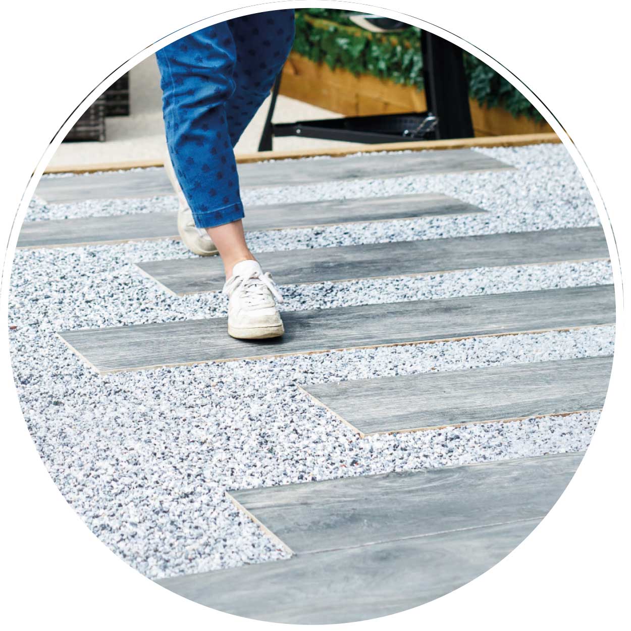- Terrazze e cortili: trasforma terrazze e cortili con pavimentazioni in granulato, creando spazi esterni pedonali accoglienti e facili da mantenere.