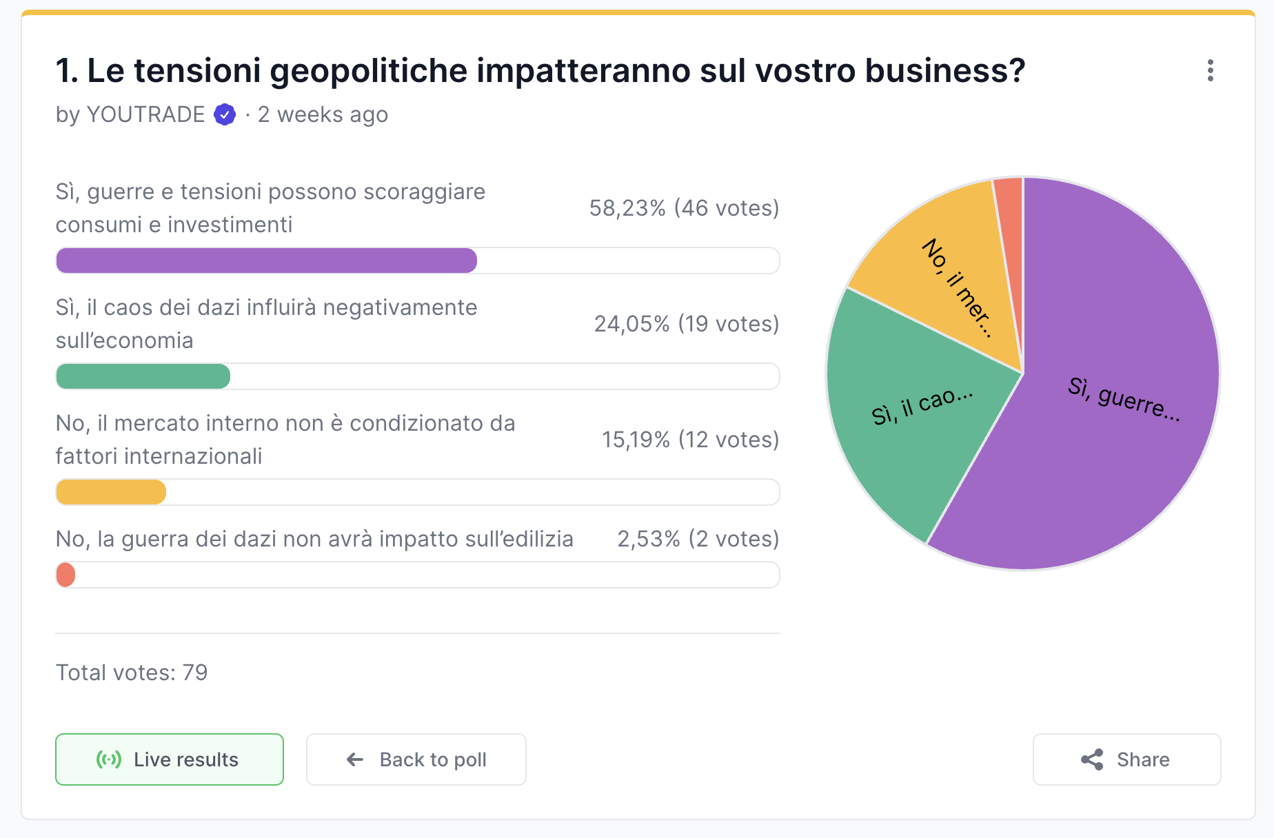 Un sondaggio YouTrade in tempo reale cha ha avuto lo scopo di focalizzare quali sono le istanze reali del popolo dell’edilizia, al di là di quelle che possono essere le supposizioni e perfino le indicazioni degli esperti.